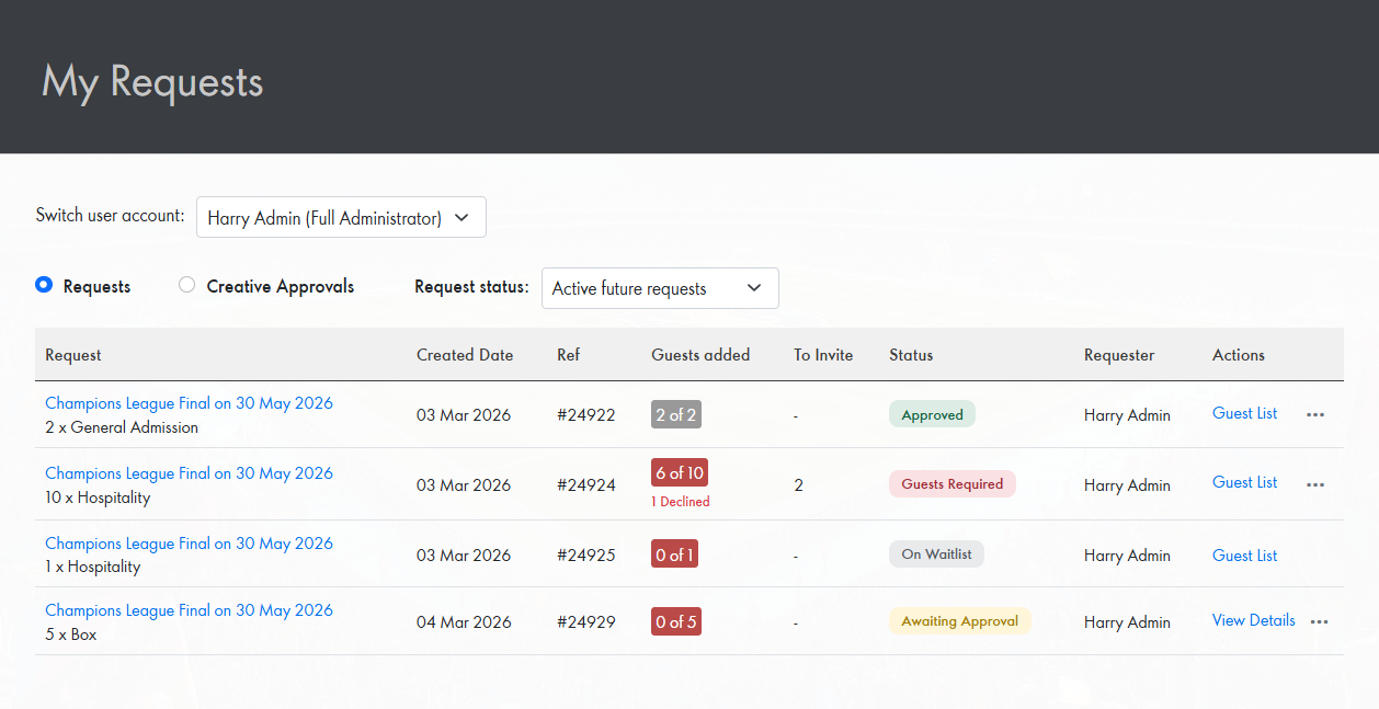 Guest List and Request Details Tabs